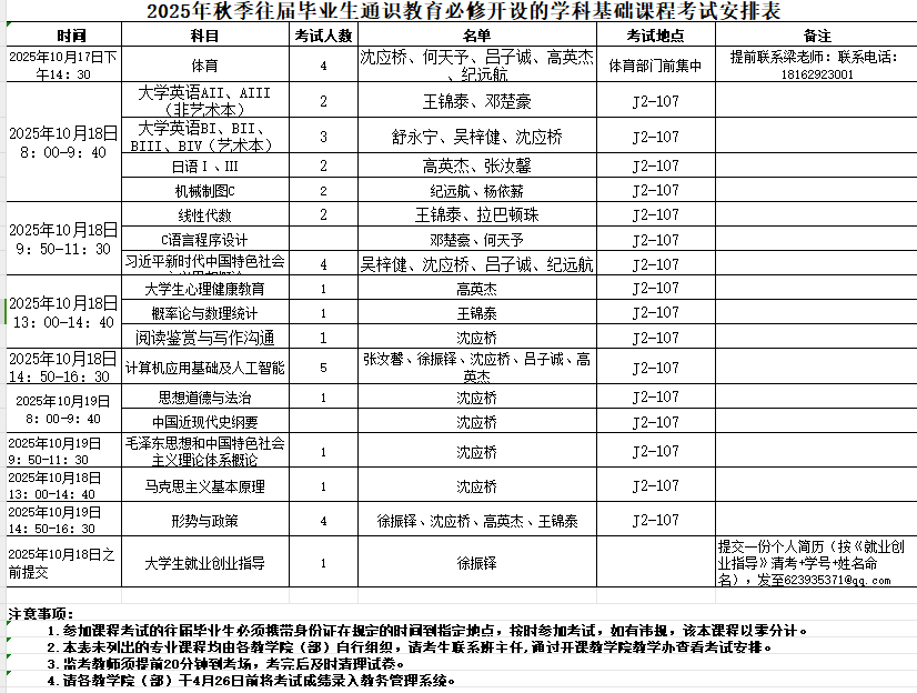 附件1:2025年秋季往届毕业生通识教育必修开设及专业学科基础课程汇总表